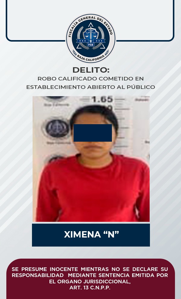 Mujer es vinculada a proceso por presuntamente robar en una negociación: Fiscalía Regional de Playas de Rosarito