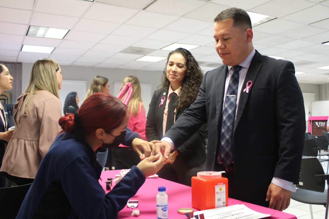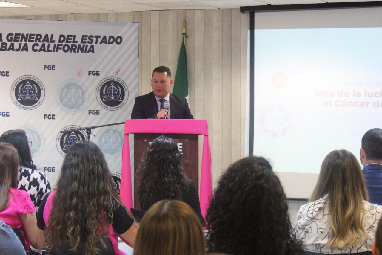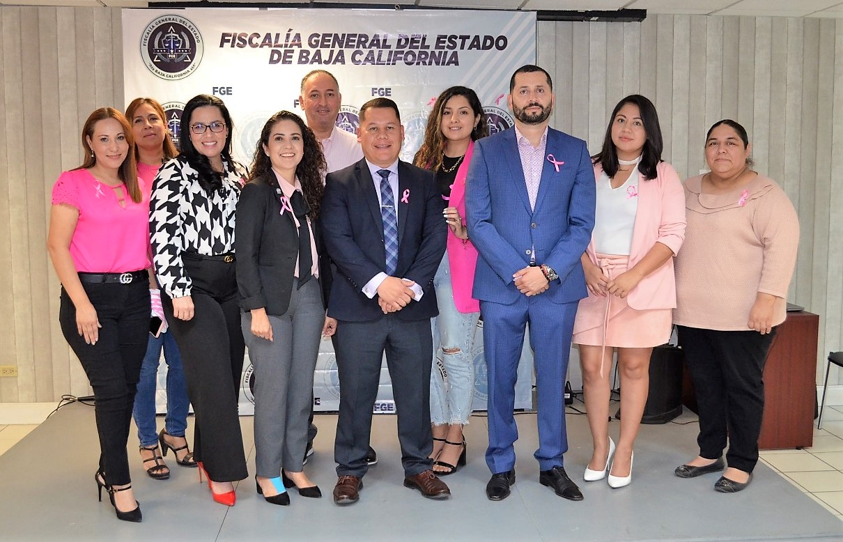 MEXICALI, B. C. - Como parte de la conmemoración de la lucha contra el “Cáncer de mama”, la Fiscalía General del Estado llevó a cabo una jornada sobre las medidas de prevención dirigida al personal de la institución.