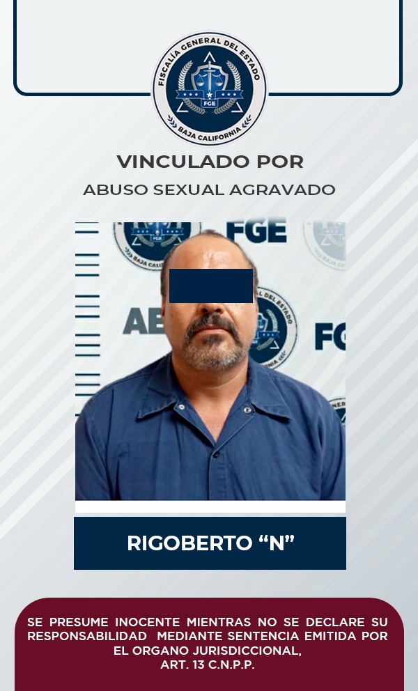 MEXICALI, B. C. - La Fiscalía General del Estado (FGE), a través del agente del Ministerio Público adscrito a la Fiscalía Especializada en Delitos Contra Mujeres por Razón de Género, presentó los elementos de prueba y argumentos que permitieron la vinculación a proceso de un hombre por el delito de abuso sexual agravado.
