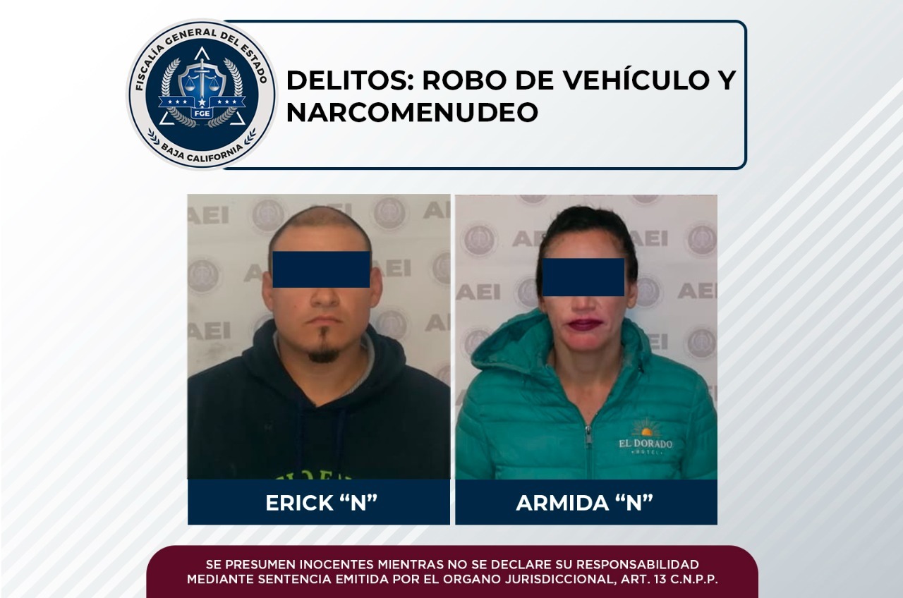 TECATE, B. C. - Agentes investigadores de la Fiscalía Regional de Tecate, en hechos distintos, cumplimentaron dos órdenes de aprehensión, en contra de un hombre y una mujer quienes son probables responsables de los delitos de robo de vehículo y narcomenudeo.