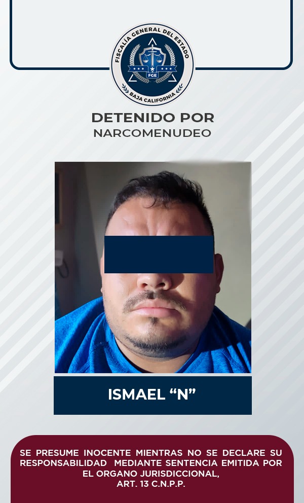 MEXICALI, B. C. - Al dar cumplimiento a una orden de cateo derivada de una denuncia anónima sobre la venta de droga, elementos de la Fiscalía Especializada en Narcomenudeo capturaron a Ismael Guadalupe “N” de 32 años, en poder de varias dosis de metanfetamina y cocaína.