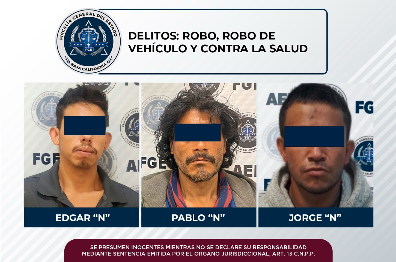 Por los delitos de robo, robo de vehículo y contra la salud, FGE cumplimenta tres mandamientos judiciales