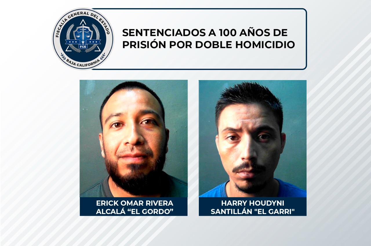 En esta ocasión, la Fiscalía Especializada en Delitos Contra la Vida, obtuvo, con base a evidencia y elementos sólidos, la pena privativa de la libertad para Harry Houdyni Santillán, alias "El Garri" y Erick Omar Rivera Alcalá, alias “El Gordo”, quienes privaron de la vida a Juan Carlos y Alexis; y lesionaron a una mujer, de nombre Alicia, en un hecho registrado el 20 de agosto de 2020, en Tijuana.