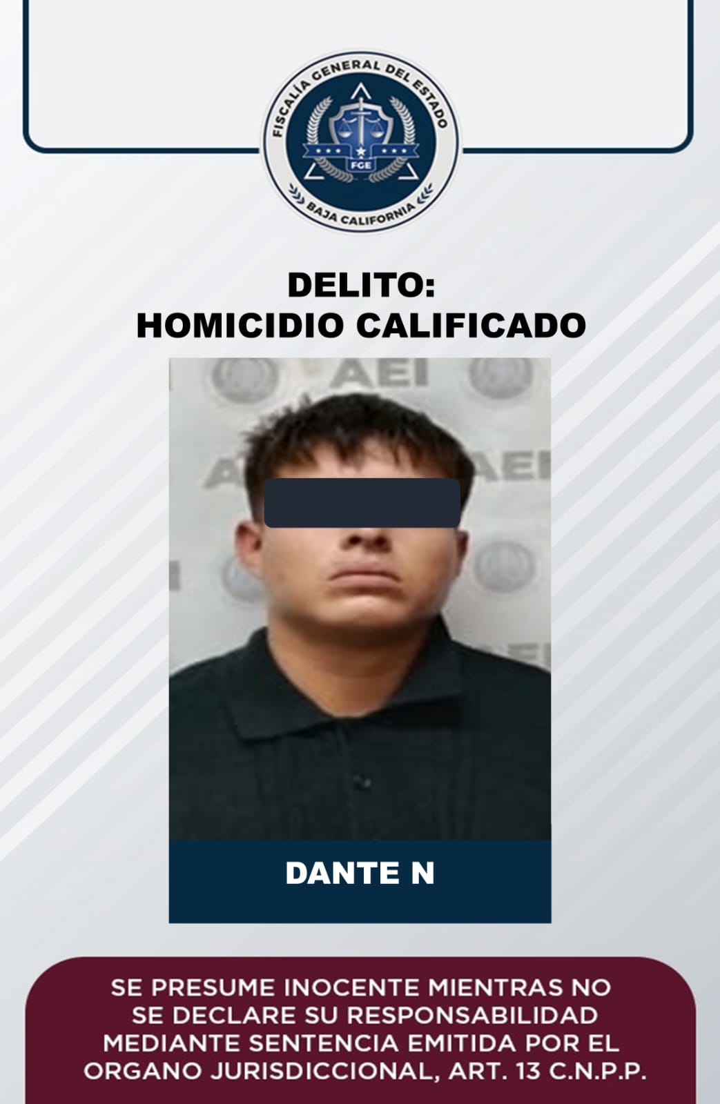 Cumplimenta FGE orden de aprehensión a presunto culpable de homicidio calificado cometido en Ensenada