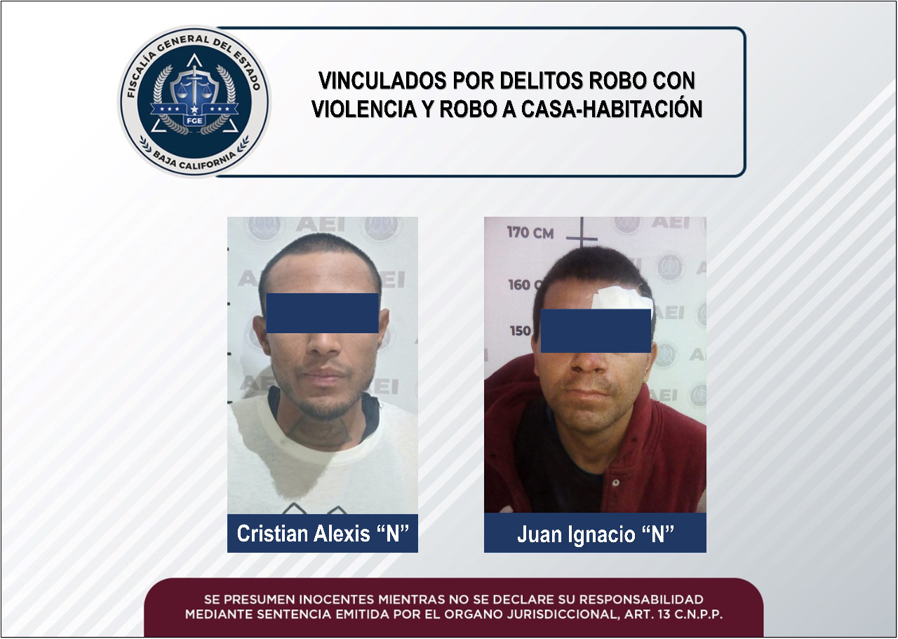 En audiencias celebradas por separado, se logró la vinculación a proceso de dos hombres por los delitos de robo con violencia y robo a casa habitación, respectivamente, así como prisión preventiva como medida cautelar.