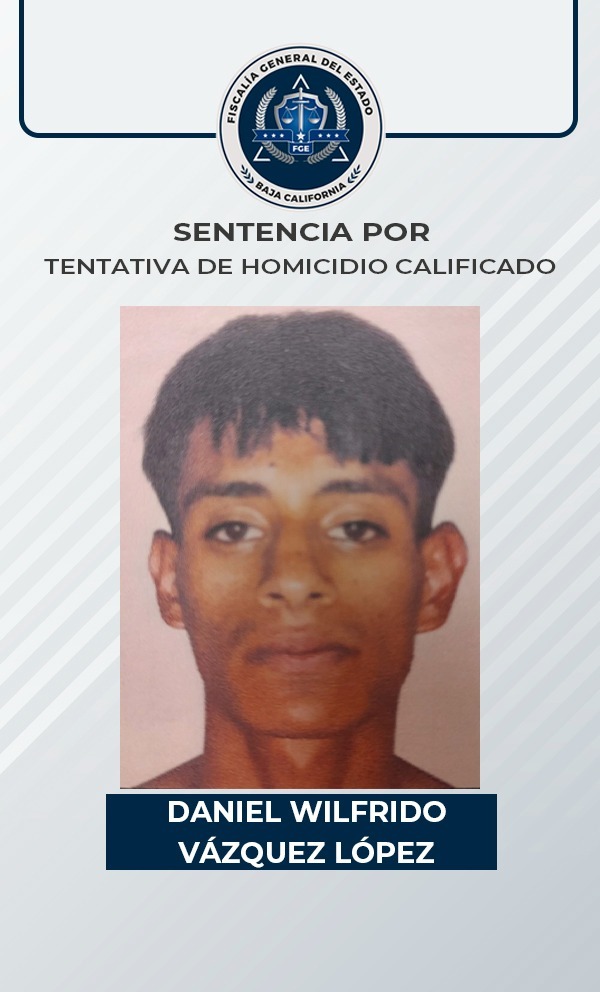 TIJUANA, B. C. - La Fiscalía General del Estado, con las pruebas presentadas por el Ministerio Público, logró que se le impusiera pena de prisión por 13 años y 4 meses a Daniel Wilfrido Vázquez López, quien resultó responsable del delito de homicidio calificado en su grado de ejecución de tentativa.