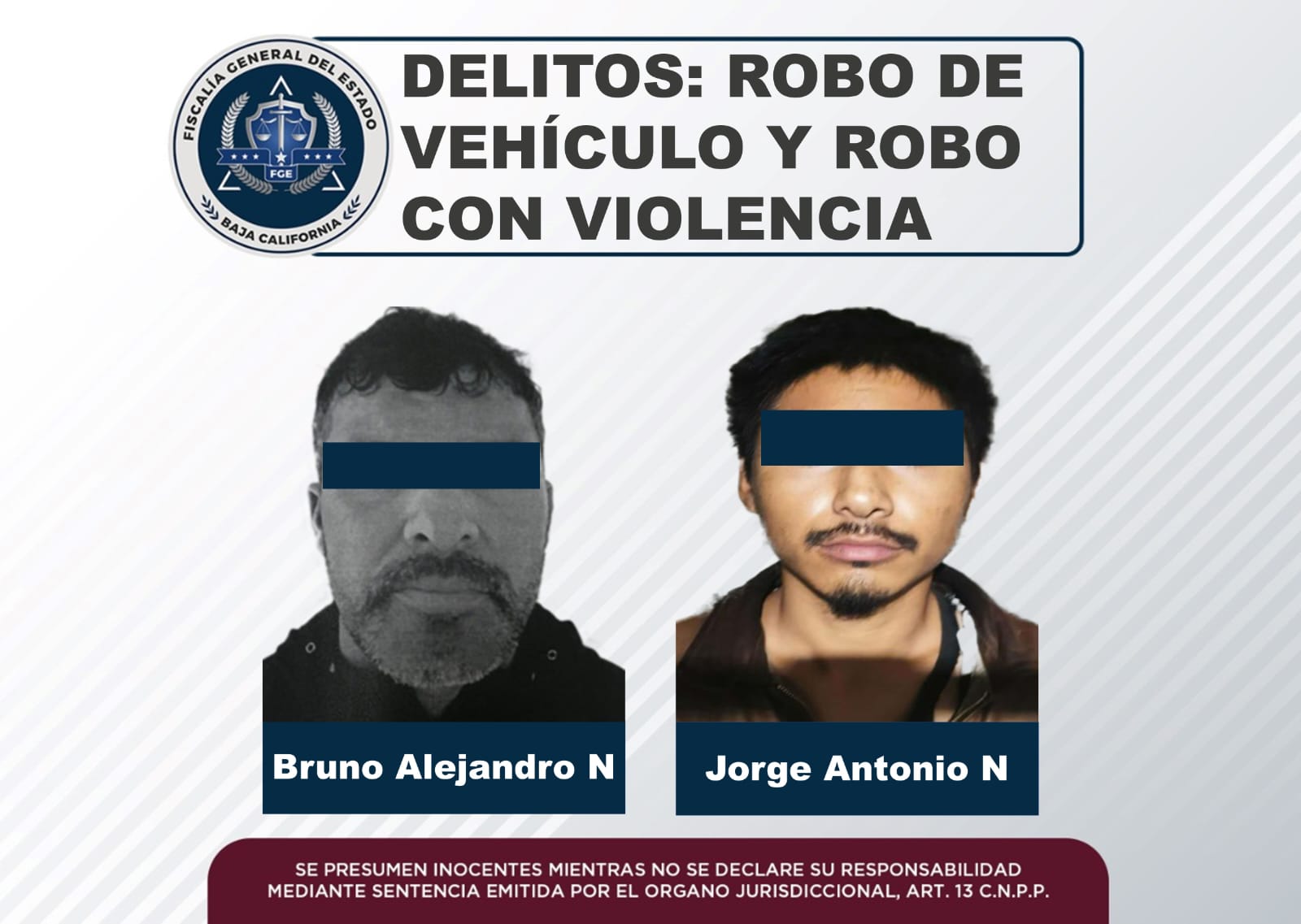 ENSENADA, B. C. - La Fiscalía Regional de Ensenada obtuvo auto de vinculación a proceso y medida cautelar de prisión preventiva en contra de dos sujetos, en uno de los casos al detenido se le señala por su presunta participación en un robo con violencia a una negociación.