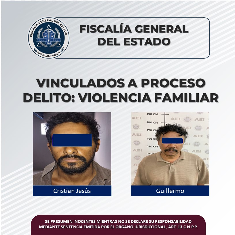 MEXICALI, B. C. - La Fiscalía Regional de Mexicali, a través de la Unidad de Investigación Foráneas de Ciudad Morelos y la Unidad de Investigación con Detenidos Oriente, logró que el Juez iniciara proceso penal en contra de dos acusados de agredir a sus familiares.