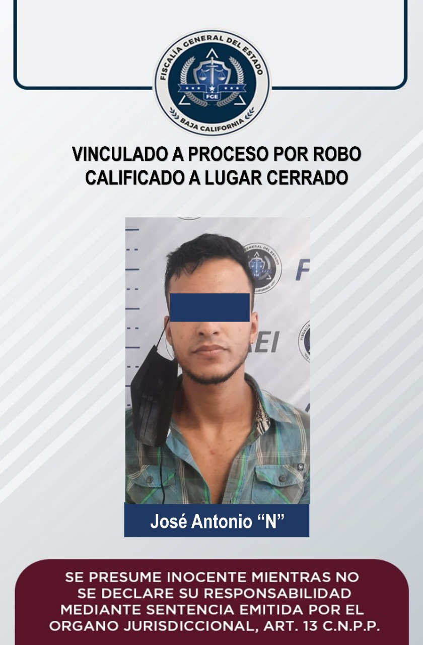 MEXICALI, B. C. - La Fiscalía Regional de Mexicali a través de la Unidad de Investigación de Delitos de Robos Poniente, obtuvo una nueva vinculación a proceso en contra de un joven presuntamente involucrado en varios robos con violencia perpetrados a comercios.