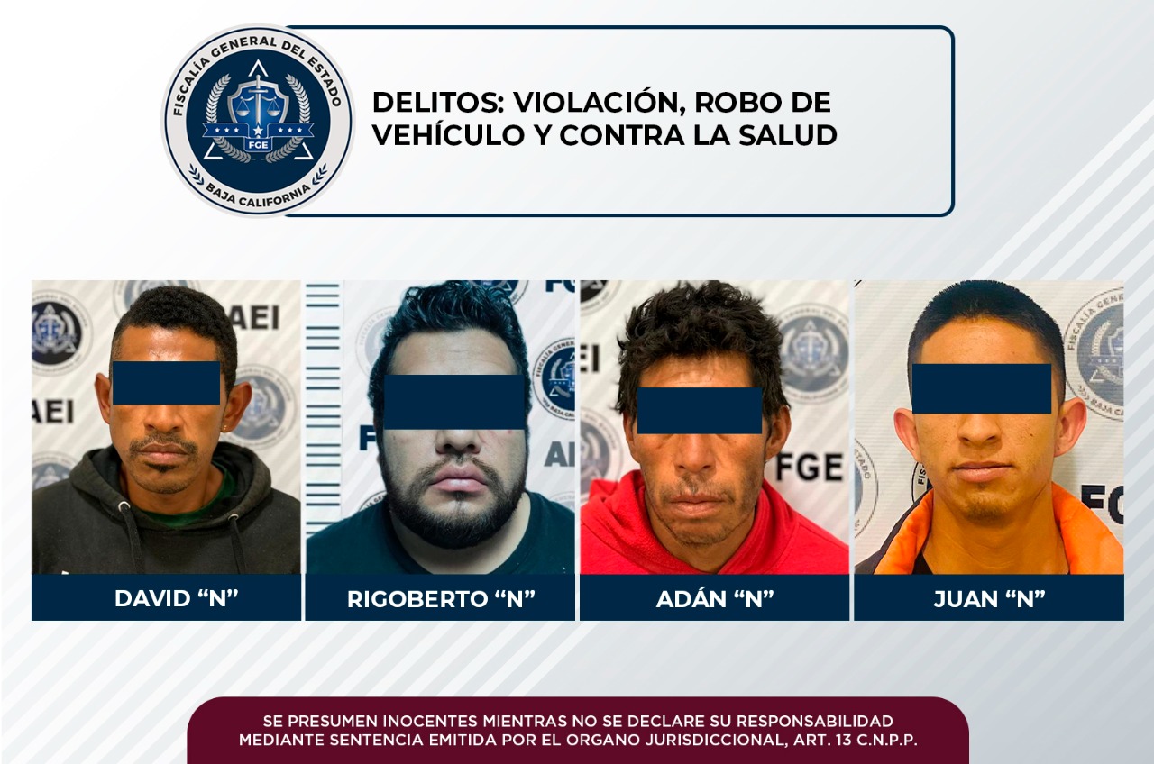TIJUANA, B. C. - Agentes investigadores de la Fiscalía General del Estado (FGE), cumplimentaron órdenes de aprehensión por los delitos de violación, robo de vehículo y contra la salud, en diversas diligencias efectuadas en Tijuana.