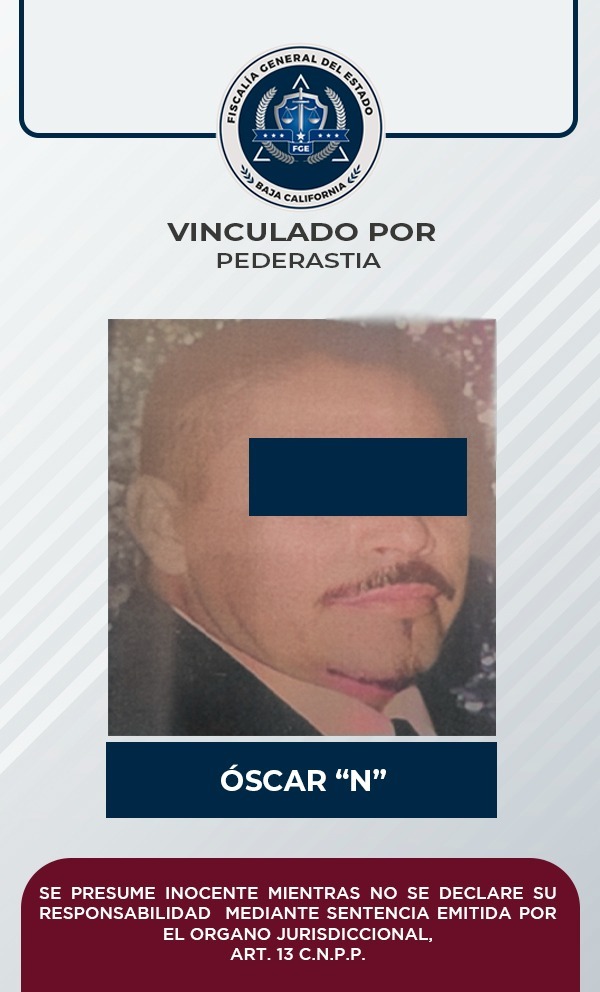 TIJUANA, B. C. - La Fiscalía General del Estado, logró con los medios de prueba presentados por el agente del Ministerio Público, que el Juez de Control tuviera datos fundados para vincular a proceso a un acusado por el delito de pederastia.