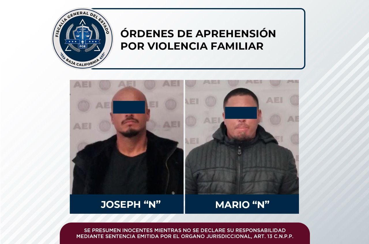 TECATE, B.C. - Elementos de la Agencia Estatal de Investigación (AEI) adscritos a la Unidad de Investigación de Delitos Contra la Libertad Sexual y la Familia, detuvieron a dos personas que contaban con mandamientos judiciales por el delito de violencia familiar.