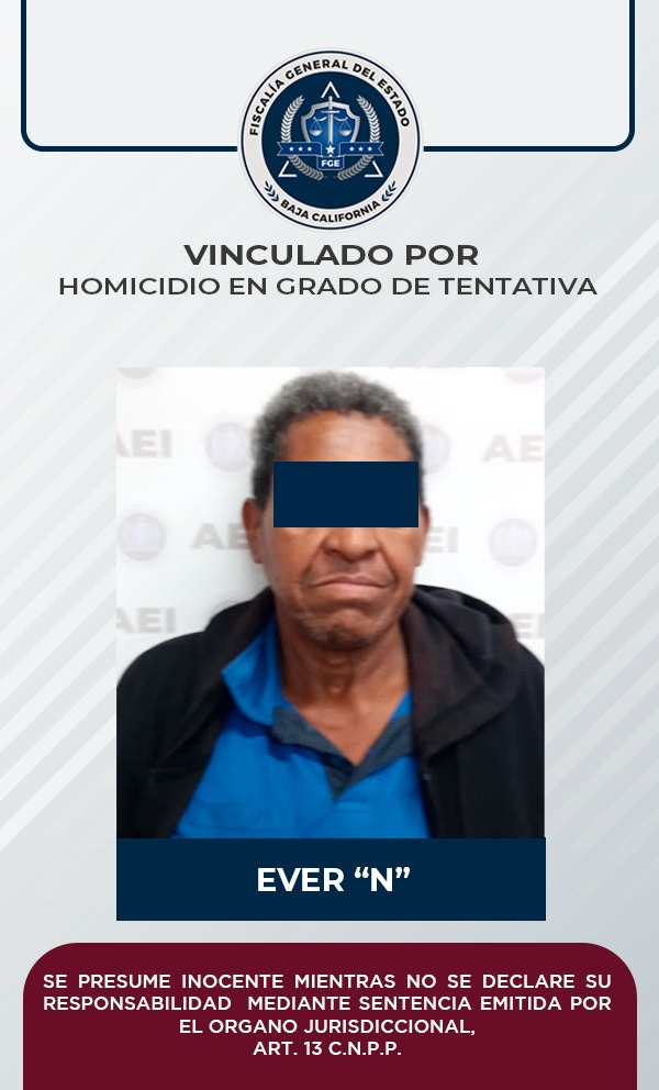 MEXICALI, B.C. - Con base las evidencias integradas en la carpeta de investigación, la Fiscalía Regional de Mexicali, a través de la Unidad Foránea de Guadalupe Victoria, logró vincular a proceso a un hombre acusado del delito de homicidio calificado en grado de tentativa.