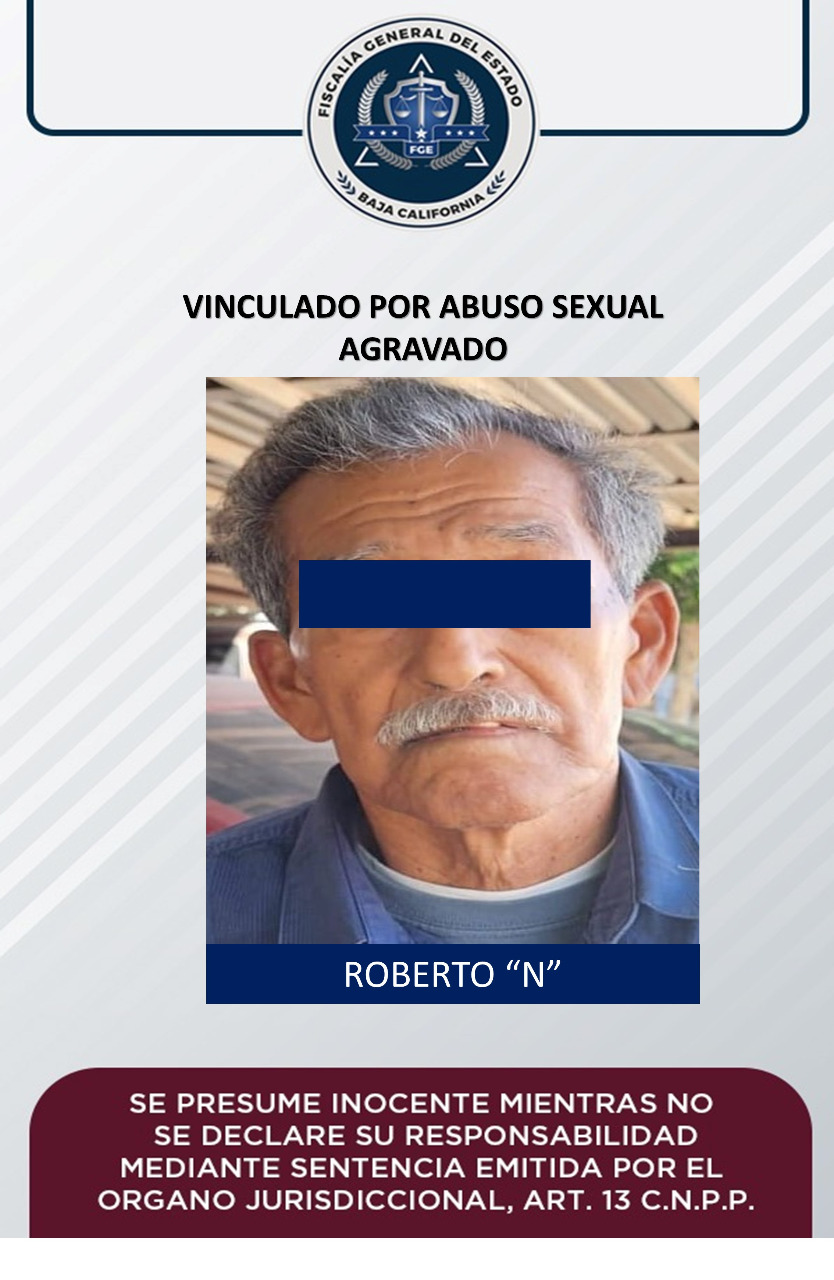 MEXICALI, B.C. - Con el firme propósito de dar cumplimiento a uno de los ejes primordiales de la Fiscalía General del Estado (FGE), que es la persecución de delitos en contra de menores de edad, se logró la vinculación a proceso de un acusado por el delito de abuso sexual, a menor de 14 años agravado.