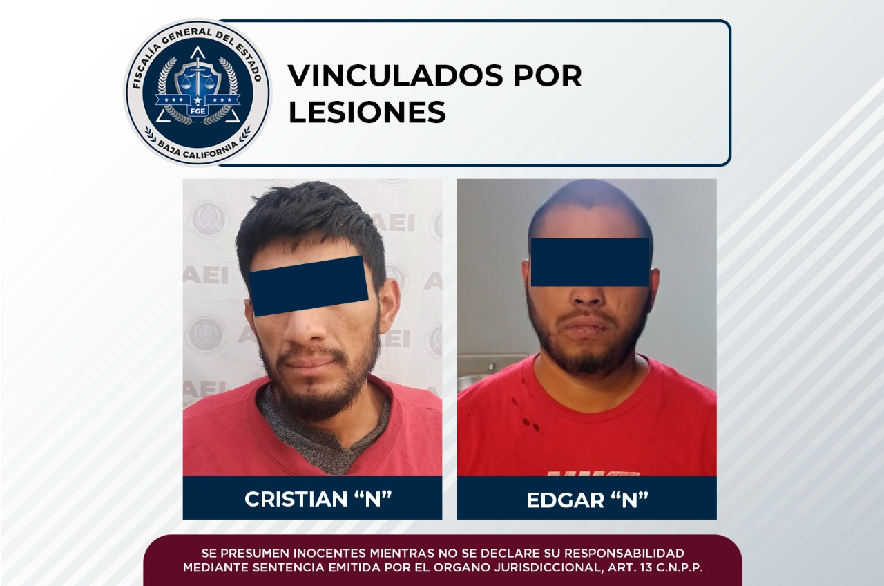 MEXICALI, B.C. - La Fiscalía Regional de Mexicali, a través de la Unidad de Investigación Foránea de Ciudad Morelos y la Unidad de Investigación con Detenidos Poniente, obtuvo la vinculación a proceso de dos personas acusadas por el delito de lesiones.