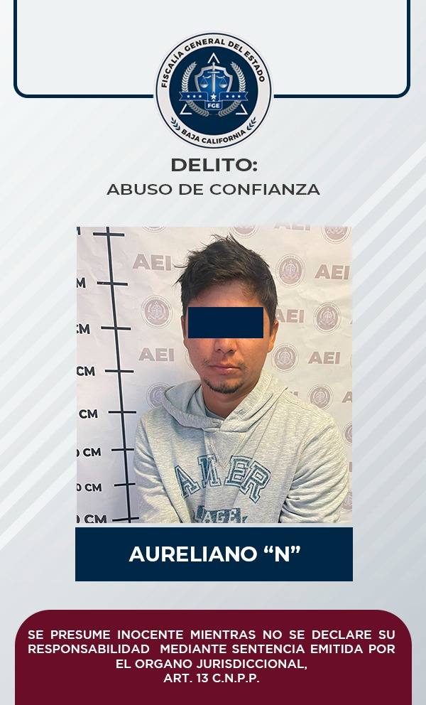 PLAYAS DE ROSARITO, B.C. - Un hombre que responde al nombre de Aureliano “N”, fue vinculado a proceso por el delito de abuso de confianza, lo cual fue posible tras los elementos de prueba recabados por la Fiscalía Regional de Playas de Rosarito, a través de la Unidad Especializada en Delitos Patrimoniales.
