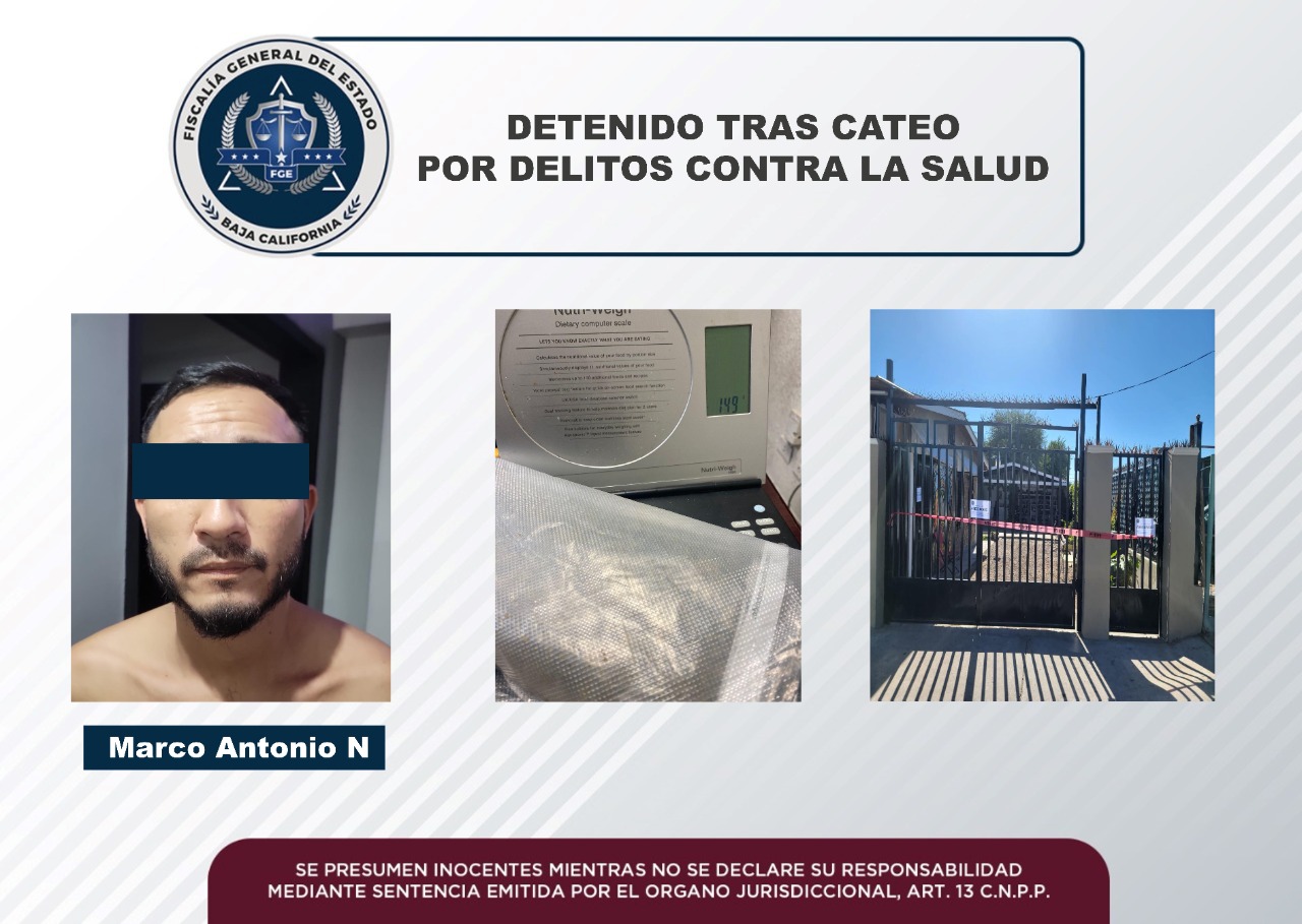 MEXICALI, B.C. - La Fiscalía General del Estado, a través del Ministerio Público y elementos de la Agencia Estatal de Investigación de la Fiscalía Especializada en Narcomenudeo Zona Mexicali, dando seguimiento a una denuncia anónima, en cuanto a este ilícito, cumplimentó una orden de cateo.