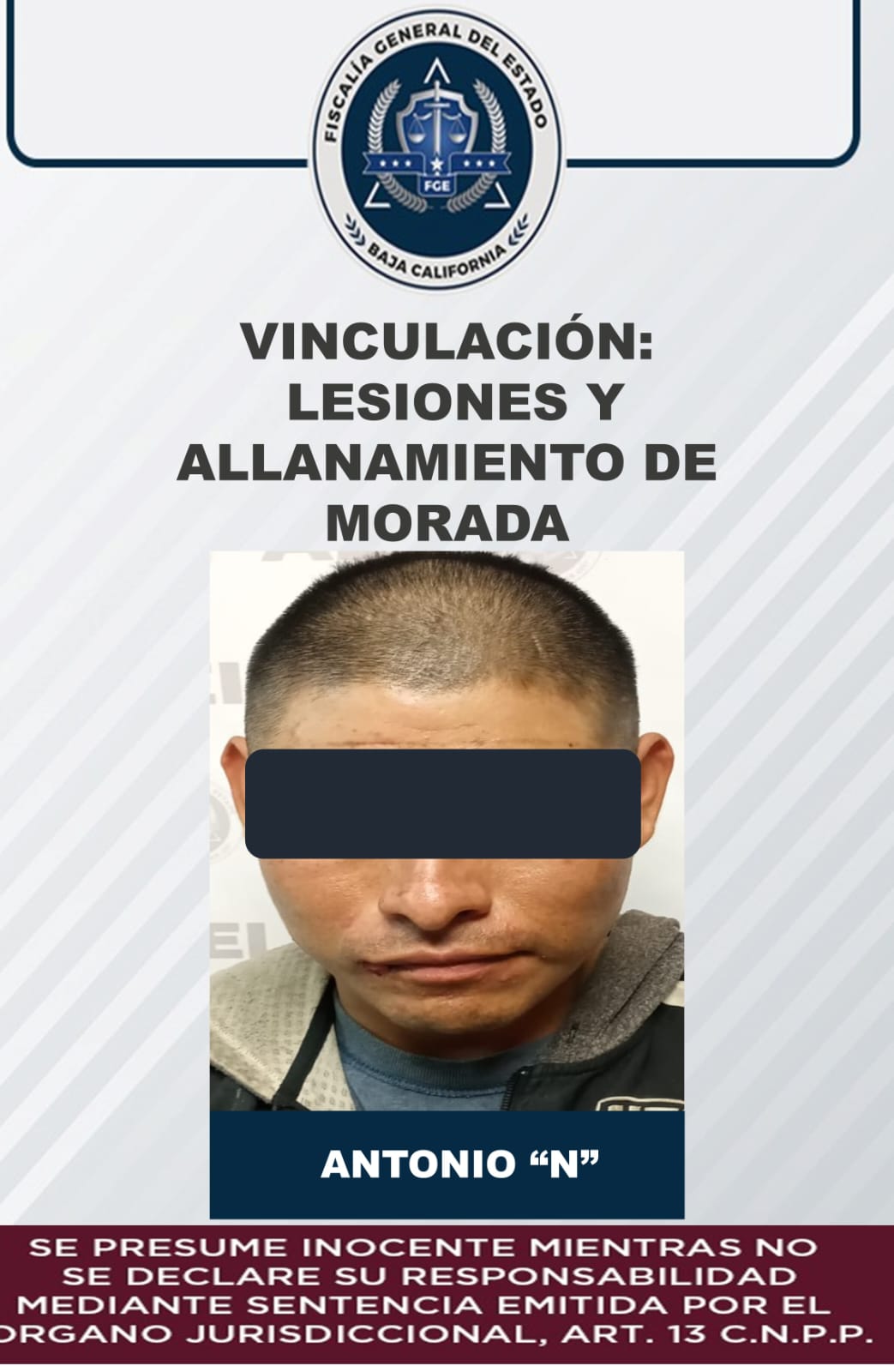 SAN QUINTÍN, B.C. - La Fiscalía Regional de San Quintín, obtuvo auto de vinculación a proceso en contra de Antonio “N”, por los delitos de lesiones calificadas y allanamiento de morada, cometidos en la delegación de Camalú.
