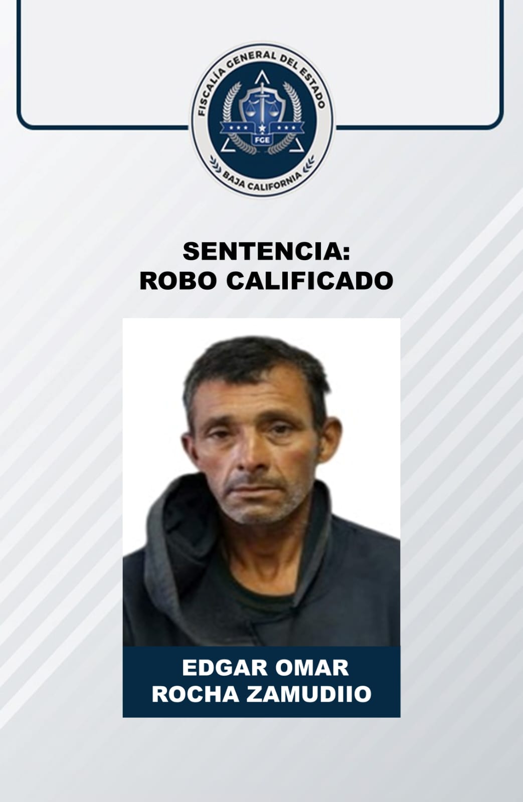 ENSENADA, B.C. - La Fiscalía Regional de Ensenada logró sentencia condenatoria en contra de Edgar Omar Rocha Zamudio, por el delito de robo calificado, cometido en octubre de 2021.