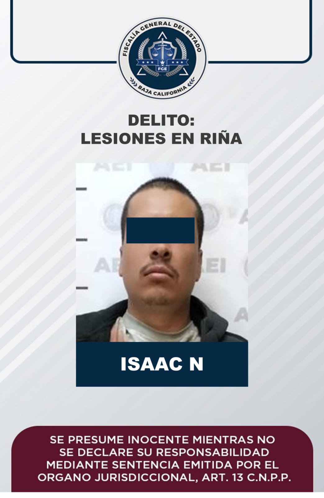 ENSENADA, B.C. - Por el delito de lesiones en riña que ponen en riesgo la vida, fue vinculado a proceso un sujeto que agredió con un arma blanca a un hombre en una unidad de transporte público el 7 de noviembre del año en curso, informó la Fiscalía Regional de Ensenada.
