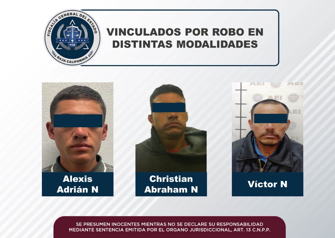 Fiscalía Regional logra vinculación de tres sujetos señalados por robo en Ensenada