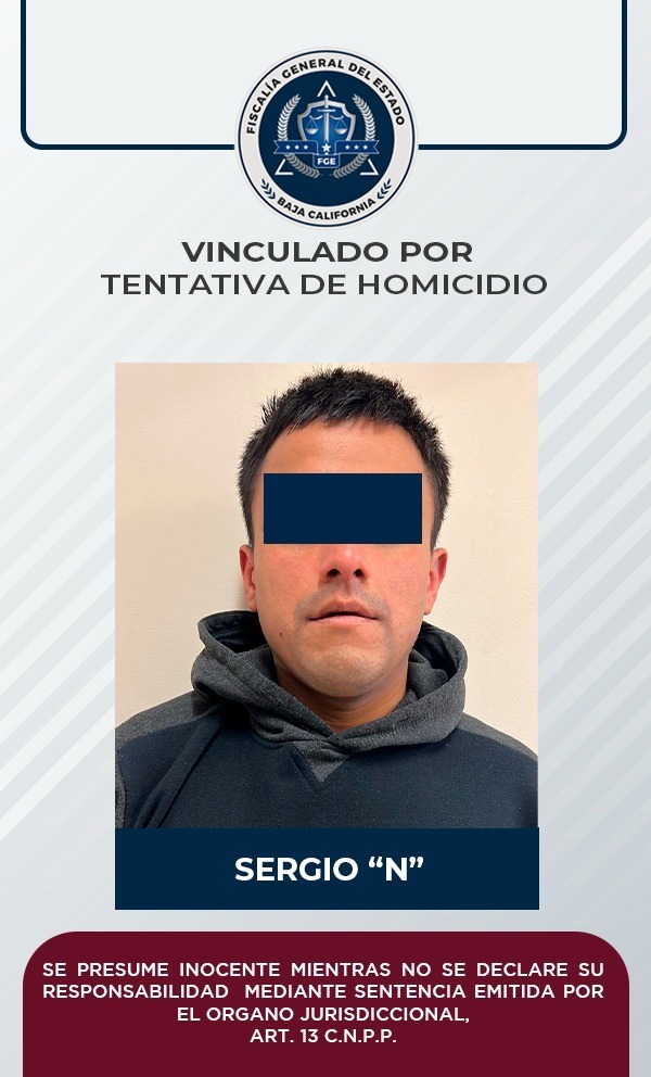 TIJUANA, B.C.- Tras ser presentados diversos datos de prueba por el agente del Ministerio Público de la Fiscalía General del Estado, Sergio Alejandro “N” fue vinculado a proceso por una juez, por ser probable responsable del delito de homicidio calificado con ventaja en grado de tentativa.