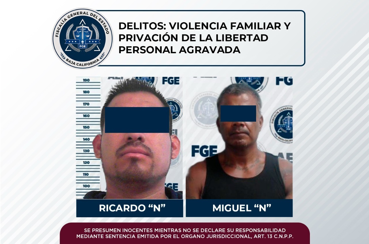 TIJUANA, B.C. - En diligencias distintas, agentes de la Fiscalía General del Estado cumplimentaron orden de aprehensión en contra de dos hombres por los delitos de violencia familiar, así como privación de la libertad personal agravada.