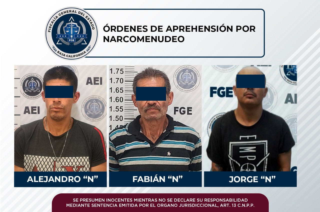 TIJUANA, B.C. - Elementos de la Agencia Estatal de Investigación de la Fiscalía Regional de Tijuana, en acciones por separado, cumplimentaron tres mandamientos judiciales, a igual número de personas, por delitos contra la salud en la modalidad de narcomenudeo.