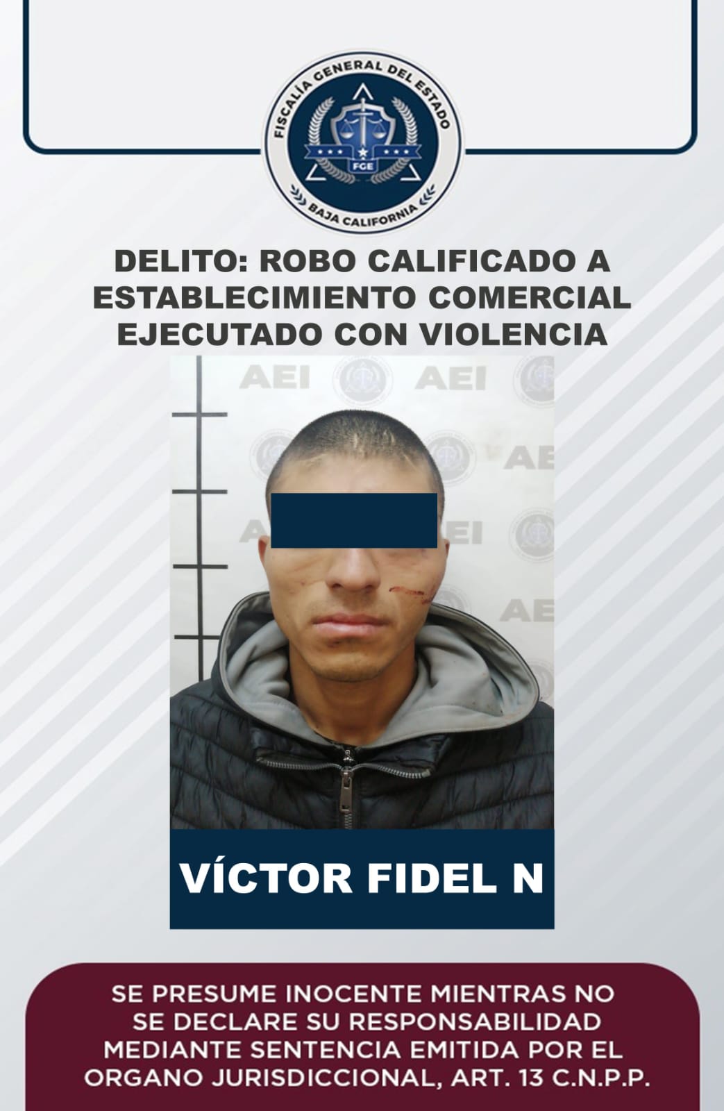 ENSENADA, B.C. - A través de datos de prueba expuestos por el Ministerio Público ante un Juez de Control, la Fiscalía Regional de Ensenada logró la vinculación a proceso de un sujeto detenido en flagrancia por su presunta participación en dos robos con violencia, sucedidos en perjuicio de dos tiendas de conveniencia el 19 de noviembre del año en curso.