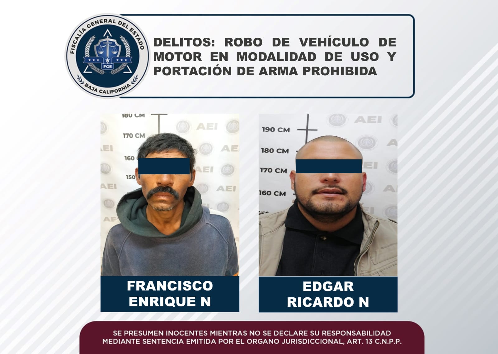 ENSENADA, B.C. - 23 DE NOVIEMBRE DE 2022.- En casos distintos, la Fiscalía Regional de Ensenada obtuvo auto de vinculación a proceso en contra de un hombre por conducir un auto robado, así como de otro individuo asegurado por portar un machete.