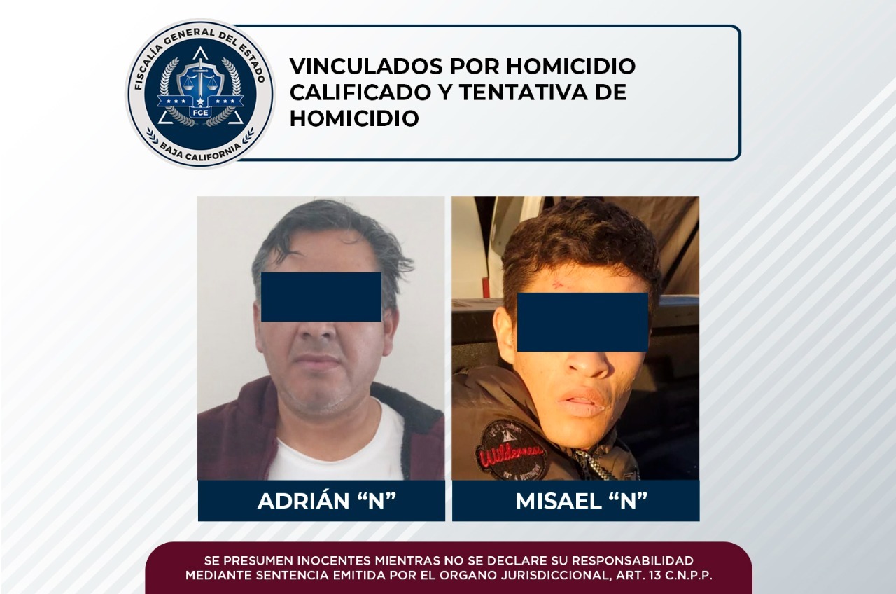 TIJUANA, B.C.- Los imputados Adrián “N” y Misael “N”, han sido vinculados a proceso y se encuentran en prisión preventiva, luego de que fueron detenidos en flagrancia delictiva, tras el crimen cometido el 20 de noviembre de 2022 en el Hotel Cancún de la delegación La Mesa en Tijuana.