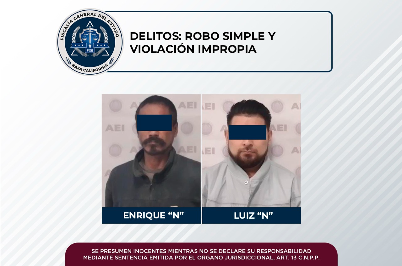 TECATE, B.C.- En acciones distintas, elementos de la Agencia Estatal de Investigación (AEI), cumplimentaron órdenes de aprehensión en contra de dos sujetos por su probable comisión en los delitos de robo simple y violación impropia.