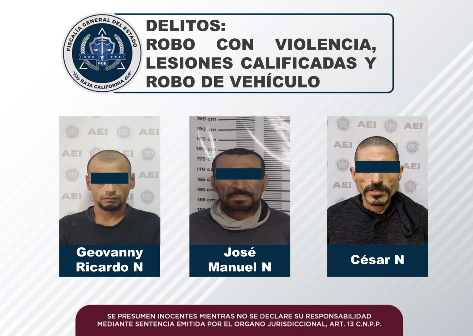 ENSENADA, B.C.- La Fiscalía General del Estado (FGE), en Ensenada, cumplimentó órdenes de aprehensión en contra de tres individuos por diversos delitos; a uno de los imputados se le implica en tres robos sucedidos en la localidad.