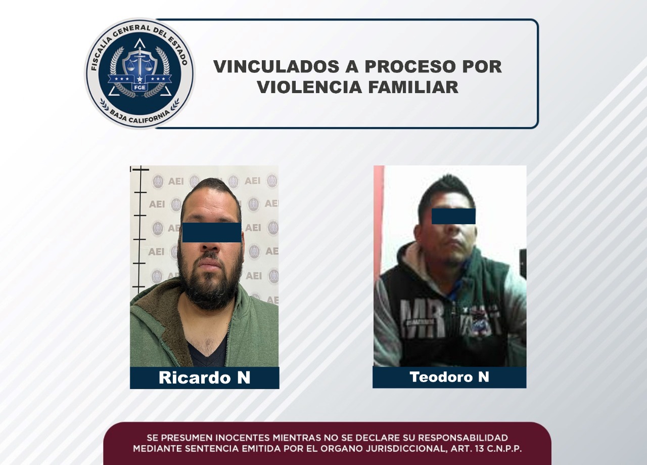 MEXICALI, B.C.- La Fiscalía General del Estado, a través de la Unidad de Investigación de Delitos con Detenido Poniente y la Unidad Foránea de Guadalupe Victoria, obtuvo la vinculación a proceso en contra de dos hombres por el delito de violencia familiar, en audiencias por separado.