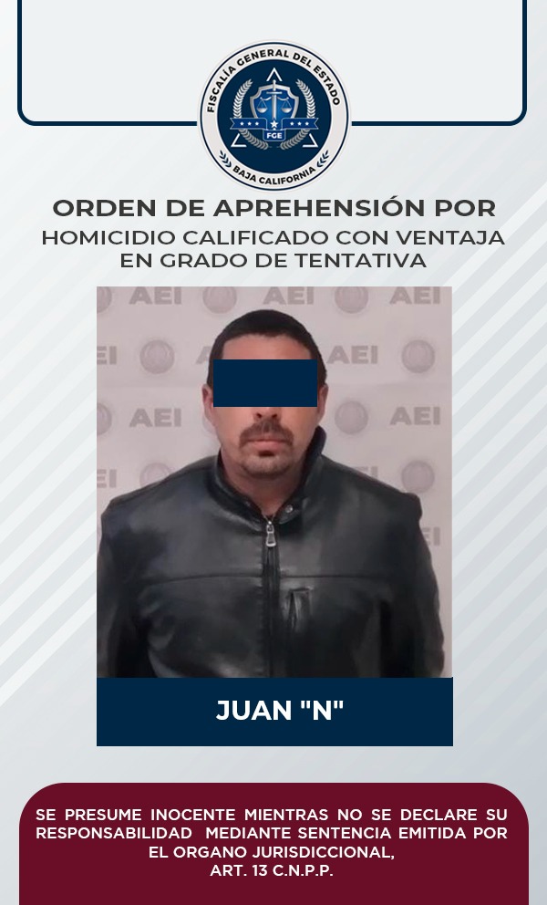 El 29 de noviembre de 2022, a las 08:40 horas, Juan Manuel “N” fue ubicado y detenido en la carretera Tecate Ensenada, a él, se le acusa de haber participado en el delito de homicidio calificado con ventaja en grado de tentativa, razón por la cual fue capturado por agentes investigadores pertenecientes a la Fiscalía Especializada en Delitos Contra la Vida.