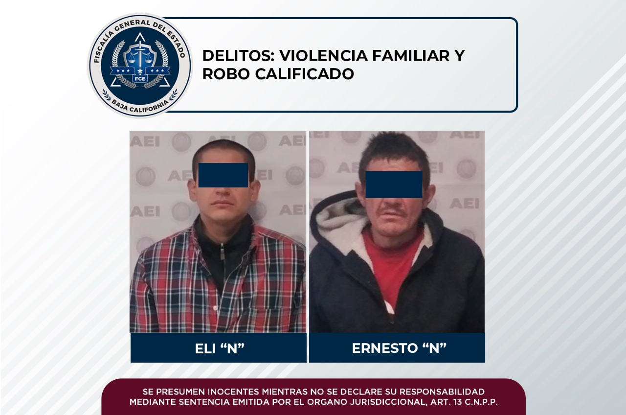 TECATE, B.C.- La Fiscalía General del Estado, a través de la Agencia Estatal de Investigación (AEI), llevó a cabo diversas diligencias que permitieron cumplimentar dos mandamientos judiciales, al mismo número de personas por los delitos de violencia familiar y robo calificado en establecimiento comercial con servicio al público.