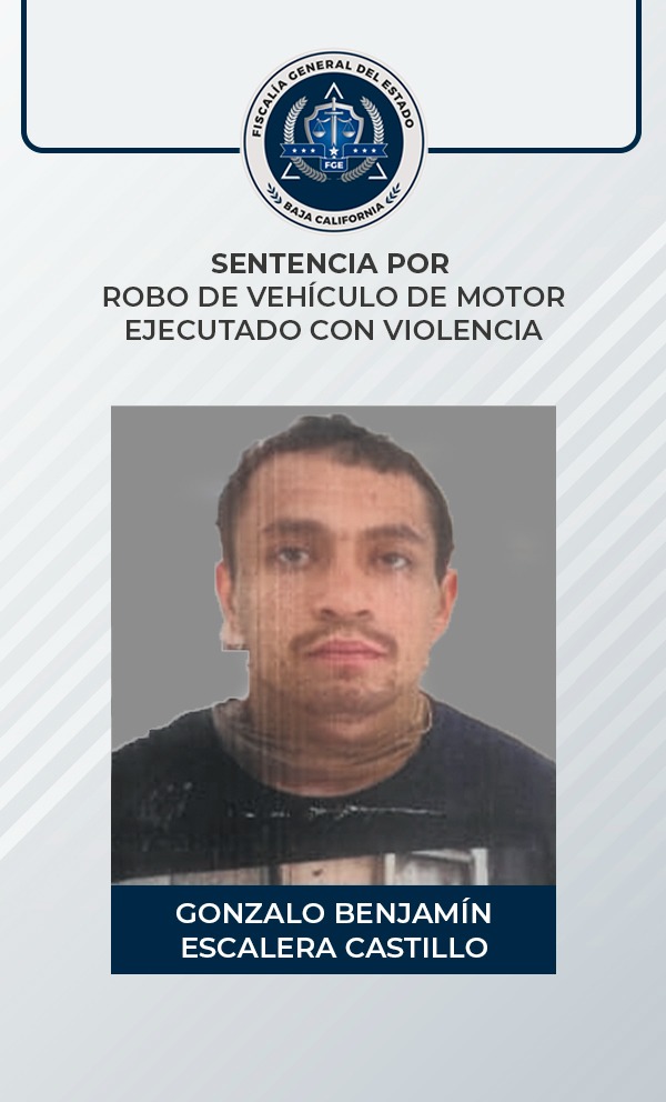 PLAYAS DE ROSARITO, B.C.- 2 DE DICIEMBRE DE 2022.- Elementos de prueba recabados por la Fiscalía Regional de Playas de Rosarito, a través de la Unidad de Investigación Especializada en Delitos de Robo de Vehículos, permitieron obtener una sentencia condenatoria de 6 años de prisión para Gonzalo Benjamín Escalera Castillo.