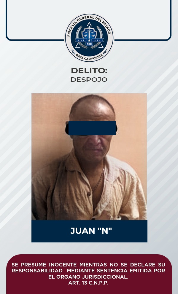 PLAYAS DE ROSARITO, B.C.- La Fiscalía Regional de Playas de Rosarito, informa que, tras recabar elementos de prueba a través de la Unidad de Investigación Especializada en Delitos Patrimoniales, se obtuvo la vinculación a proceso de Juan “N”, acusado del delito de despojo.