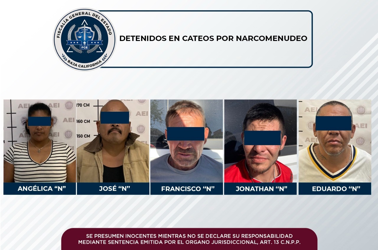 TIJUANA, B.C.- Con la plena convicción de continuar enfrentando el delito de compra venta de droga al menudeo, la Fiscalía General del Estado, a través de la Fiscalía Especializada en Narcomenudeo, y en coordinación con la Secretaría de Marina Armada de México, detuvo a cinco personas, en cuatro cateos ordenados por jueces estatales.