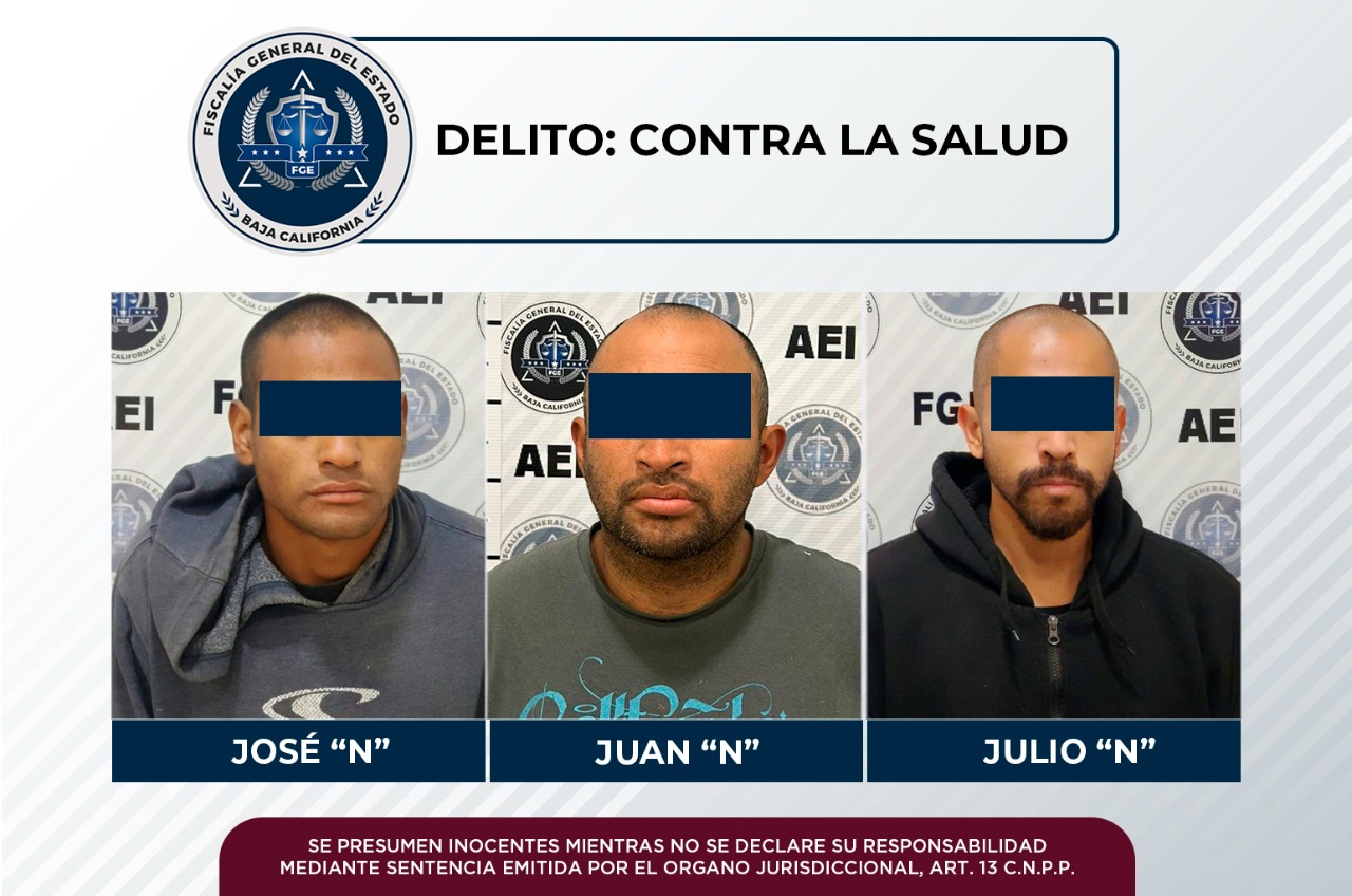TIJUANA, B.C.- Por su presunta responsabilidad en el delito de narcomenudeo, fueron aprehendidos tres hombres, en diligencias por separado, efectuadas por elementos de la Fiscalía General del Estado (FGE), adscritos a la Agencia Estatal de Investigación.