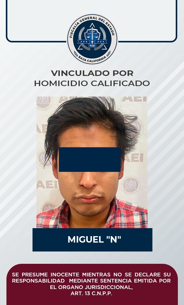 TIJUANA, B.C.- Por su presunta participación en el delito de homicidio calificado con ventaja, fue vinculado a proceso penal, Miguel Ángel “N”, de acuerdo a información proporcionada por la Fiscalía General del Estado.