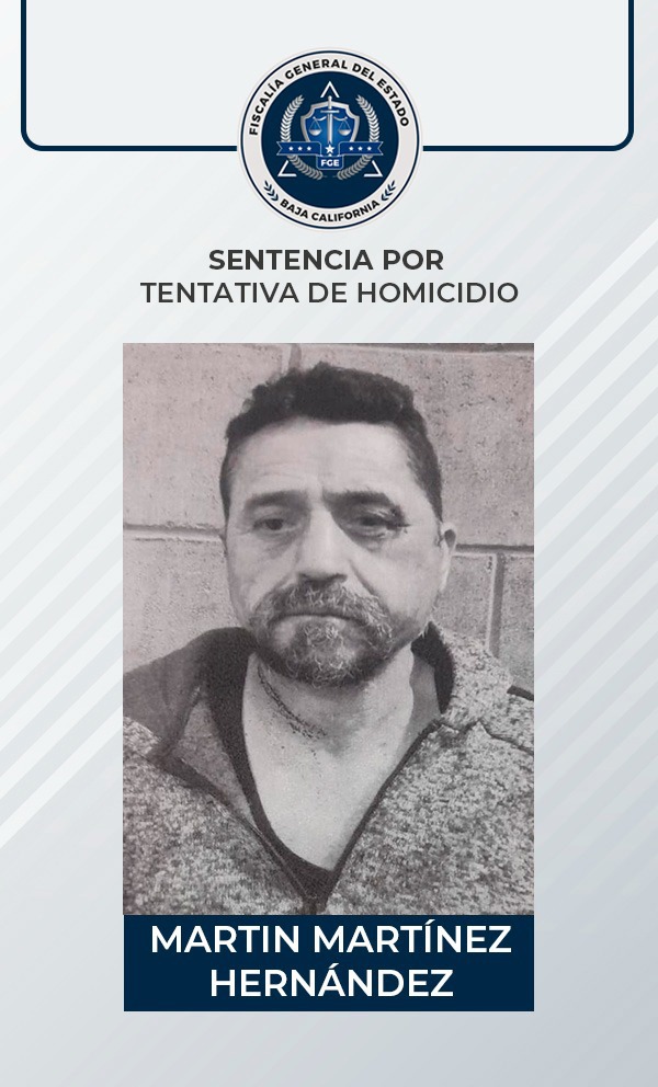 TIJUANA, B.C.- A través de un procedimiento abreviado, la Fiscalía General del Estado (FGE) obtuvo una sentencia de 15 años y 6 meses de prisión en contra de Martin Martínez Hernández, por ser responsable del delito de feminicidio en su grado de ejecución de tentativa.