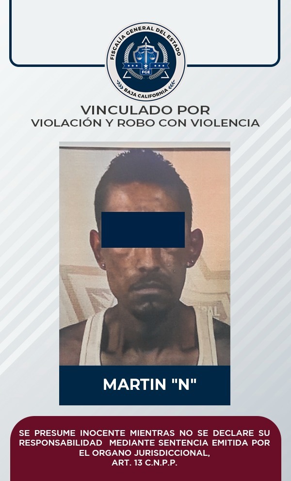 TIJUANA, B.C.- Por su probable responsabilidad en los delitos de violación y robo con violencia, Martin “N” fue vinculado a proceso penal y permaneceráִ en prisión preventiva durante el plazo que otorgó el Juez de Control a la Fiscalía General del Estado para el cierre de la investigación.