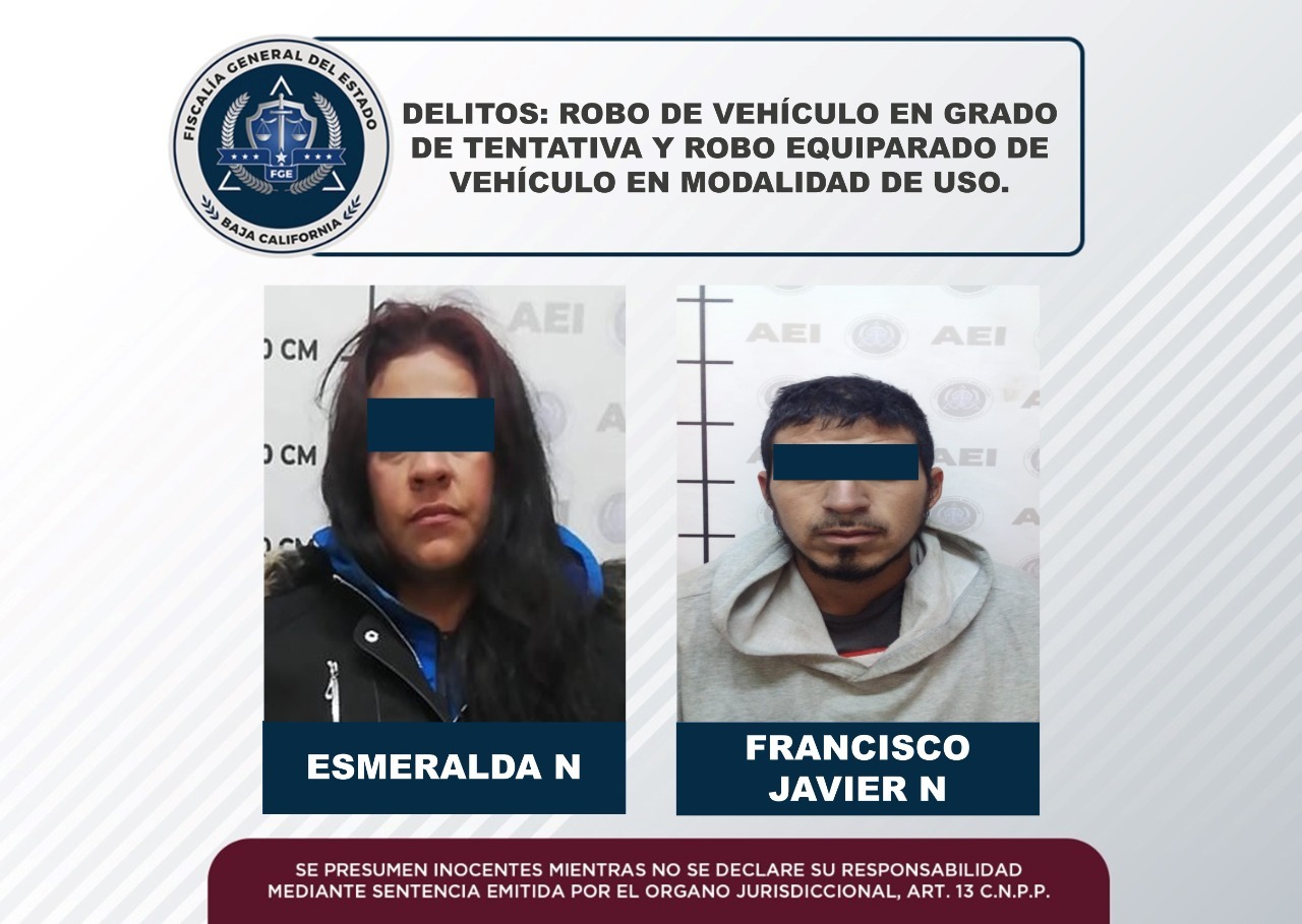 ENSENADA, B.C. - La Fiscalía Regional de Ensenada obtuvo auto de vinculación a proceso y medida cautelar de prisión preventiva justificada contra Esmeralda “N”, por el delito de robo de vehículo en grado de tentativa.