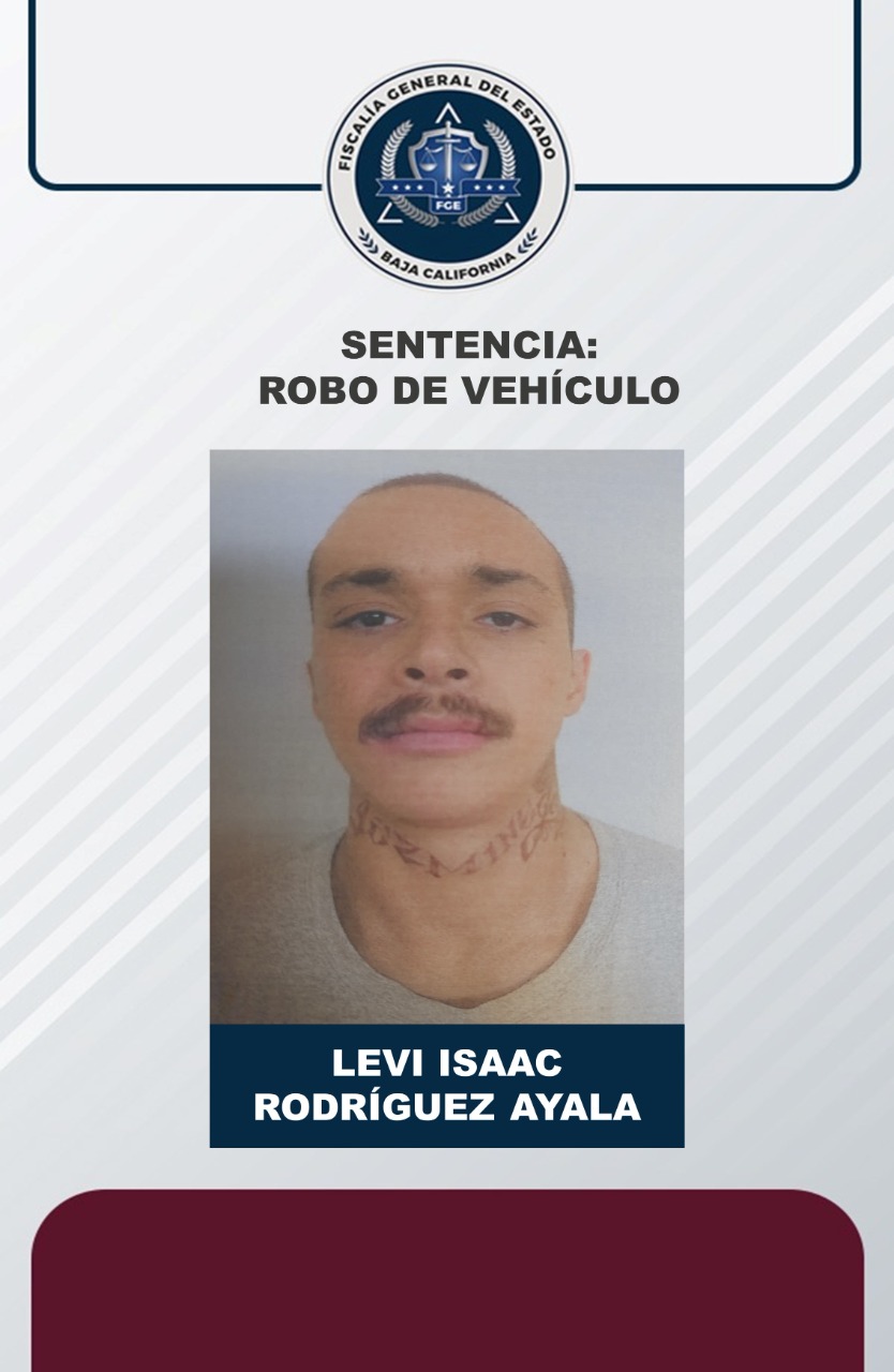 ENSENADA, B.C. La Fiscalía Regional de Ensenada obtuvo una sentencia condenatoria de cuatro años de prisión en contra de Levi Isaac Rodríguez Ayala, quien, en octubre de 2019, robó un automóvil en la colonia Sexto Ayuntamiento.