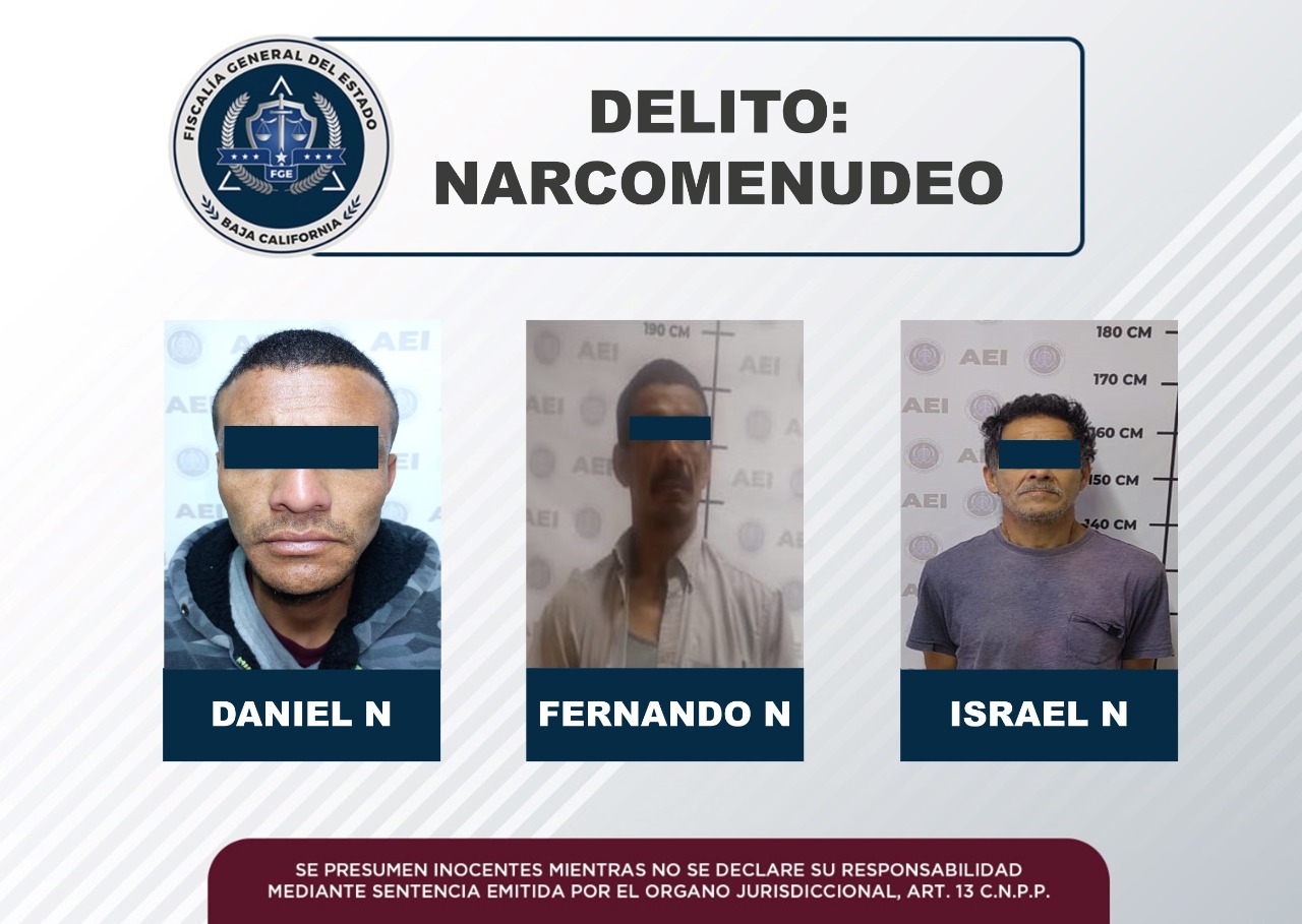ENSENADA, B.C. La Fiscalía General del Estado (FGE), cumplimentó orden de aprehensión a tres sujetos que cuentan con procesos penales en curso por el delito de narcomenudeo en Ensenada.