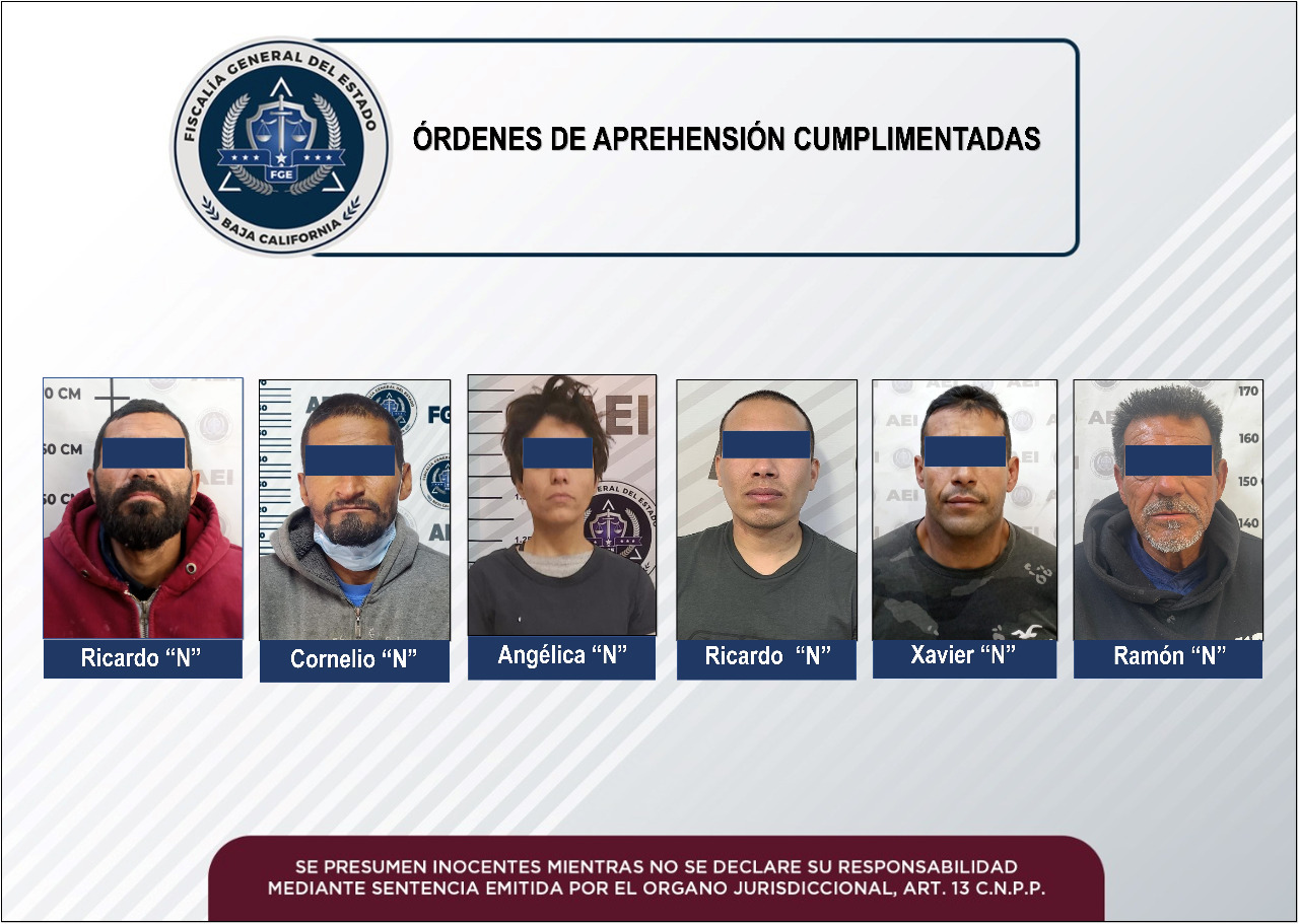 Estas acciones fueron posibles gracias a la labor de las diferentes Unidades de Investigación de la Fiscalía Regional de Mexicali, a través del Ministerio Público se otorgaron los datos de pruebas contundentes de los hechos delictivos en los que estuvieron involucrados los sujetos, por lo que un Juez de Control otorgó las órdenes de aprehensión.