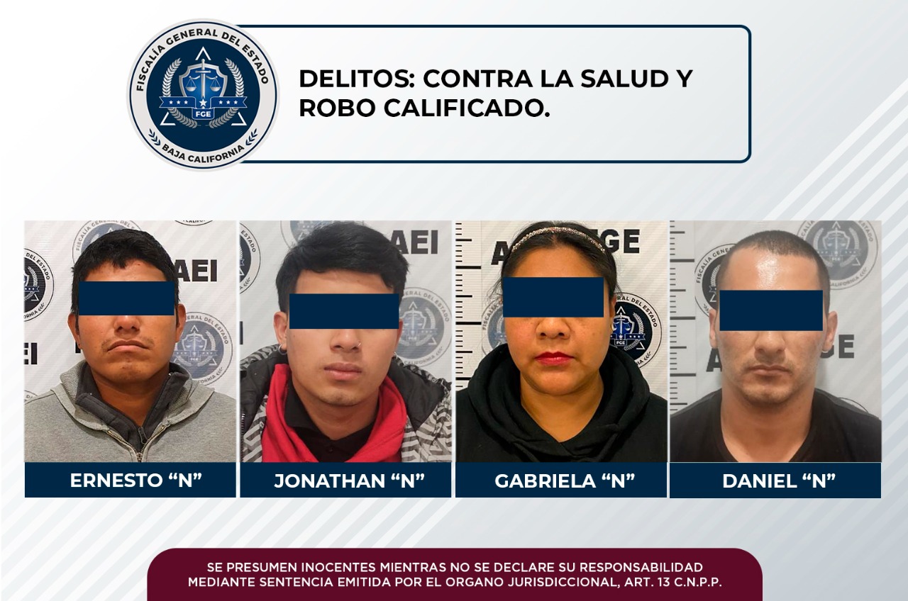 TIJUANA, B.C. Por los delitos de narcomenudeo y robo, en casos distintos, tres hombres y una mujer fueron aprehendidos por agentes investigadores de la Fiscalía General del Estado, en diligencias desarrolladas en Tijuana, el pasado 14 y 15 de diciembre.