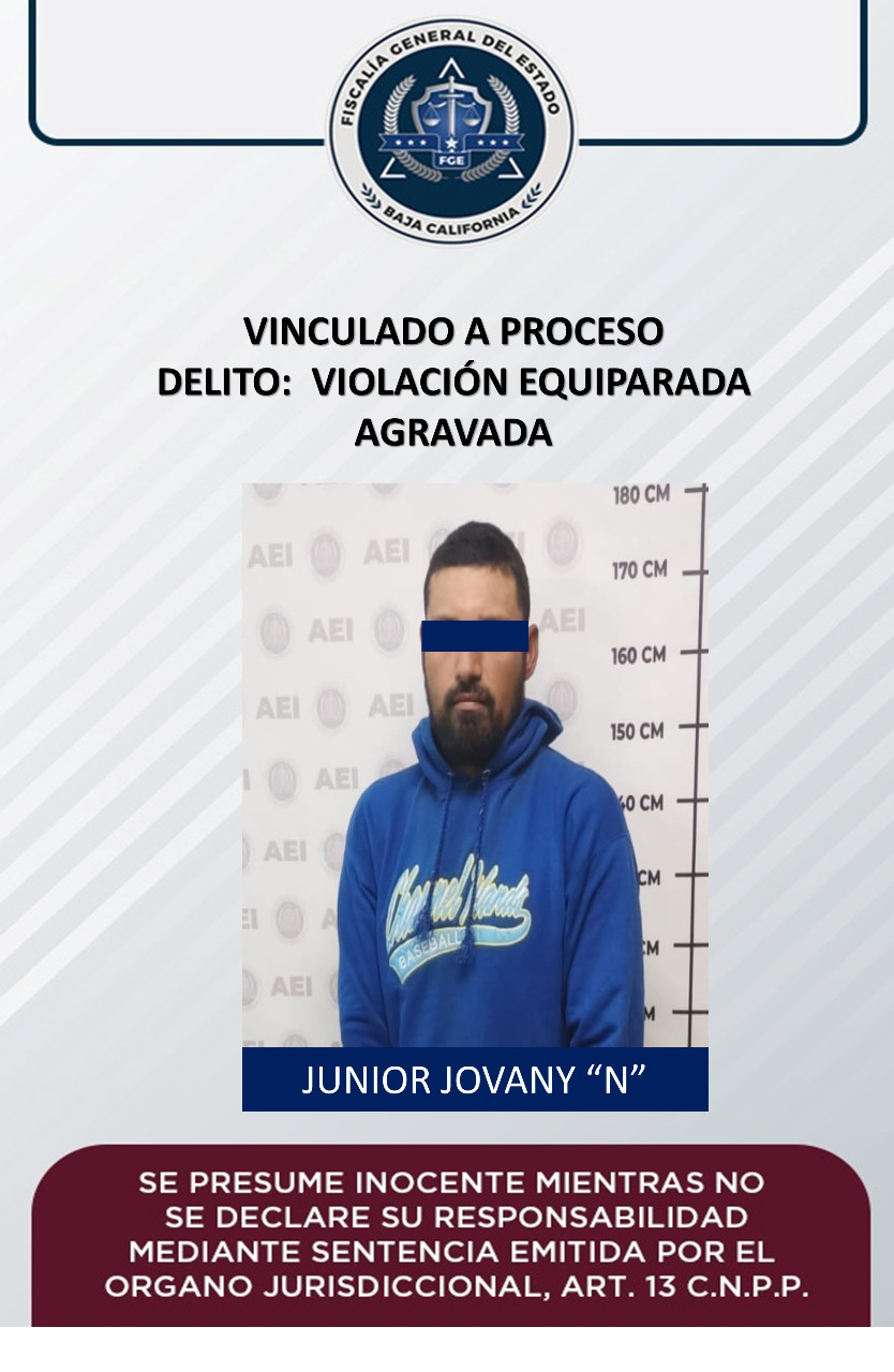 MEXICALI, B.C. Un hombre acusado del delito de violación equiparada agravada, fue vinculado a proceso con base a los elementos de prueba presentados por la Fiscalía General del Estado, a través de la Fiscalía Especializada en Delitos Contra Mujeres por Razón de Género.