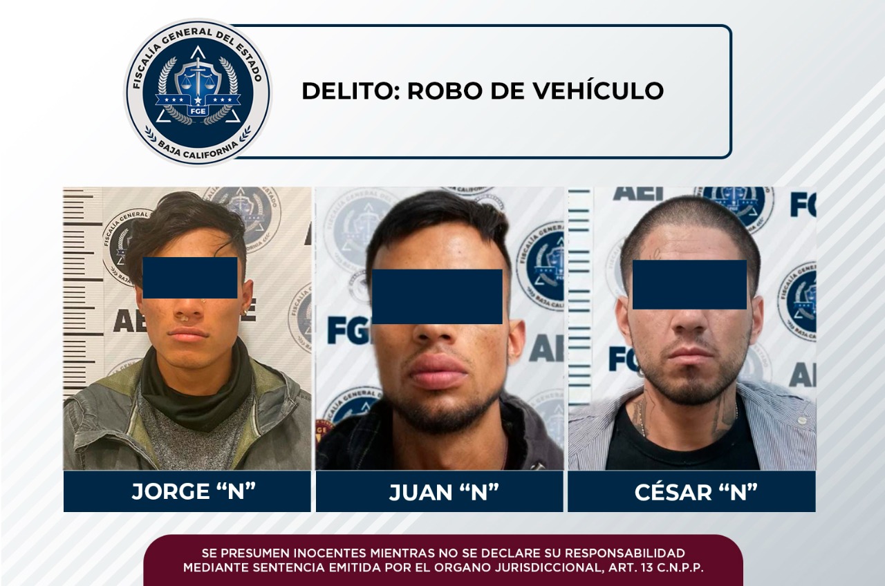 TIJUANA, B.C. Como resultado de información obtenida en gabinete y campo, elementos de la Fiscalía General del Estado, cumplimentaron tres órdenes de aprehensión emitidas por jueces de control por el delito de robo de vehículo.